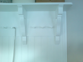 Tre konsoller för att den ska se rejäl ut!! bakom hyllan sitter skivor med pärlspont för att allt ska se ut som en möbel.
